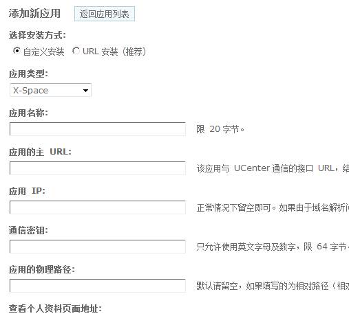 应用的主URL:该应用与 UCenter 通信的接口 URL,结尾请不要加“/” ,应用的通知只发送给主 URL ;
