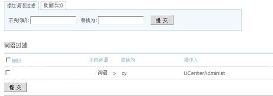 UCenter 里的词语过滤只对短消息有效,且只有替换,同时各应用里的短消息的词语过滤在 UCenter 里管理。