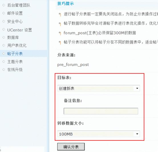 操作路径:【后台】=>【站长】=>【帖子分表】