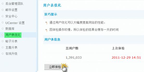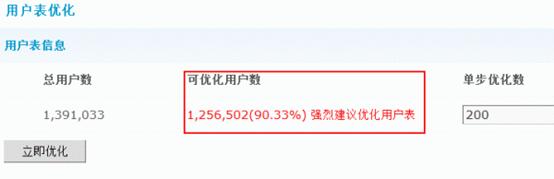 当可优化用户数大于30%以上时,我们强烈建议进行用户表优化操作。