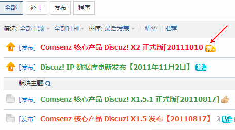 举例:这里填写的值为 50,100,200,如果主题的评价指数大于或等于 50 的话,就会主题列表页显示评价图标,效果如下图所示: