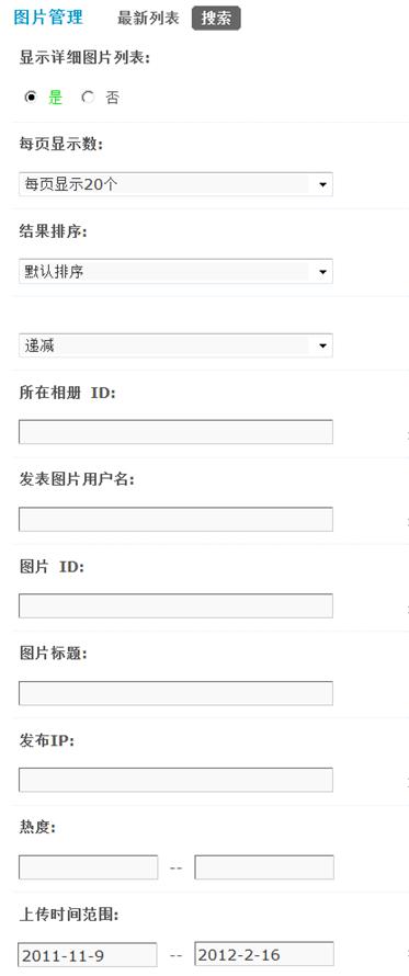 通过图片管理功能,站长可以方便的搜索和管理用户上传的图片,并且连同图片评论一同删除。