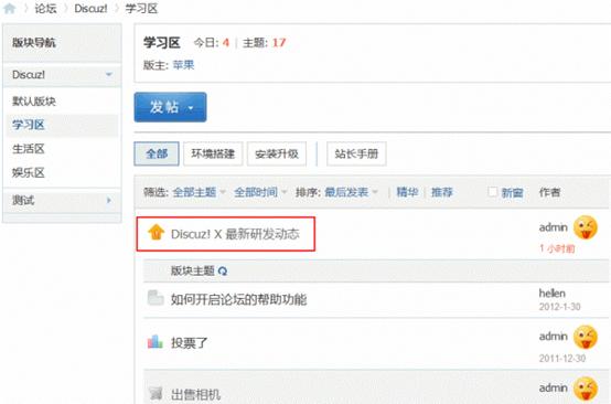 添加完成后,指定的主题将会在目标论坛版块/目标群组分类中置顶显示,如下图所示:
