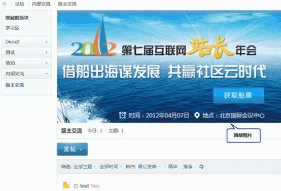 顶部图片:上传版块的顶部图片,可以直接上传也可以输入 URL 地址,效果如下: