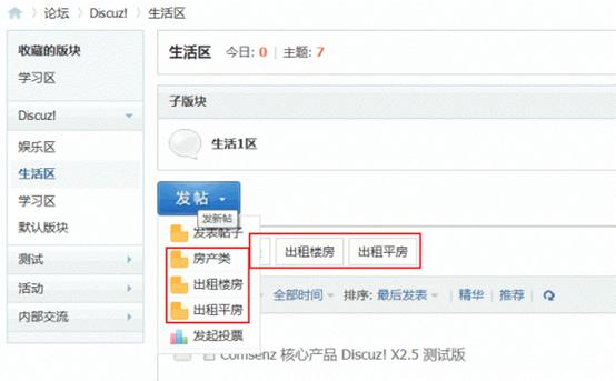 设置好分类后,在版块列表以及发帖时都可以看到分类信息