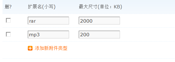 您可以设置某类附件最大尺寸为 0 以整体禁止这类附件被上传。