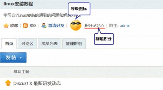 点击“增加群组等级”链接,填写等级名称,设置积分提交即可。