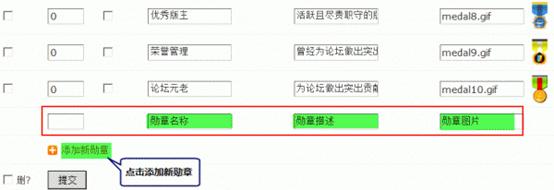 勋章图片:勋章图片名称,并将相应图片文件上传到 static/image/common/ 目录中即可。