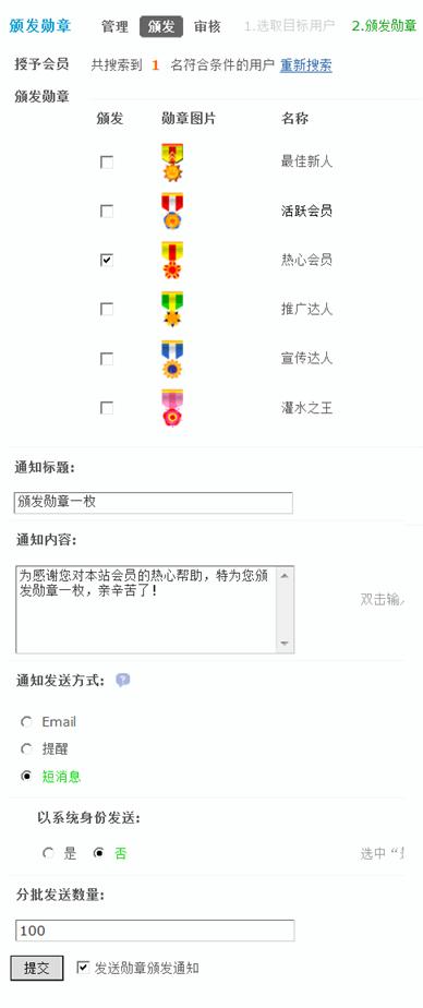 会员会收到该勋章的短消息通知。