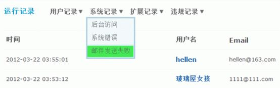 记录所有邮件发送失败的记录,帮助我们了解,给哪些用户发送邮件没有成功。