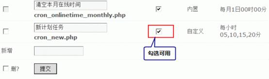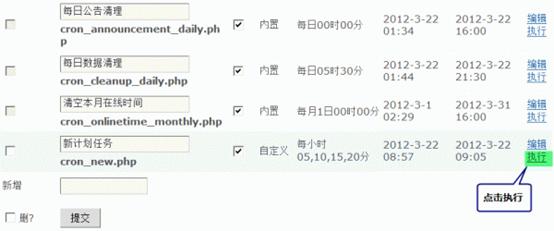 3、填写上已上传到 /source/include/cron/ 中脚本的文件名,提交。