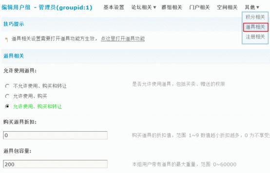 1)允许使用道具:是否允许使用道具,包括购买、使用、转让的权限。