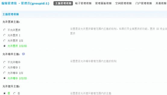 2)允许精华主题:设置是否允许精华管理范围内主题的级别。