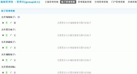 1)允许编辑帖子:设置是否允许编辑管理范围内的帖子。