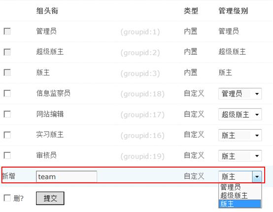 默认的管理级别有管理员、超级版主和版主。提交即可添加成功,然后设置相应的管理权限即可。
