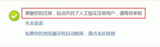 当站点开启人工审核功能后,除不受限制的会员外,其它所有注册的会员都需要管理员在后台审核通过后才可以进行正常的浏览、发帖等操作。