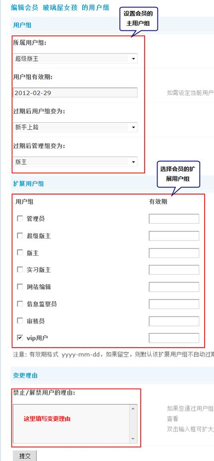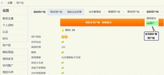 其他情况也以此类推,通过扩展用户组方式实现会员的多权限、多身份。