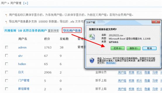 2、导出用户信息;