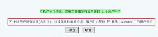 勾选“删除 UCenter 中的用户资料”:在删除该用户的同时,也删除 UCenter 中的资料。