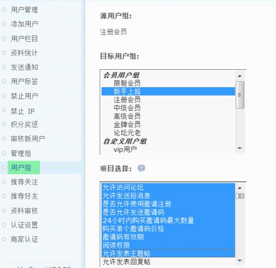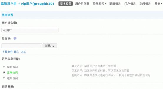 现在以我们在自定义用户组中添加的“VIP用户”用户组为例,讲解一下用户组的详细设置。