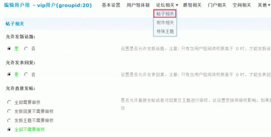 2)允许直接发帖:设置是否允许直接发帖或者对回复及主题进行审核。