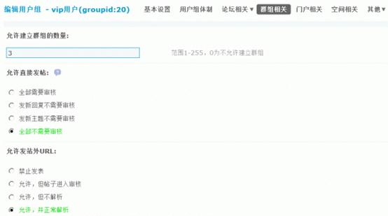 3)是否允许发站外URL:是否允许发帖包含URL,合理的设置可以有效的减少广告帖的量。