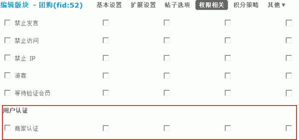 那么当我们需要限制某些认证用户在某些版块的权限时(如:只有团购商家才可以在团购版块下发起团购活动。)该怎么做呢?