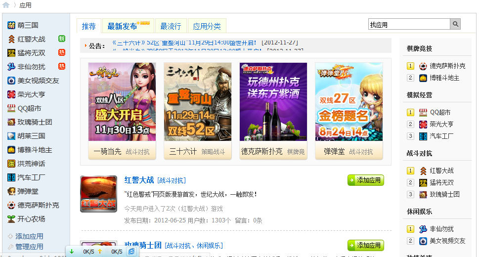 漫游漫游是网页游戏、社交游戏、工具应用集合于一体的开放平台。站长开启漫游应用功能后,网站用户可以自由选择各种不同的或好玩有趣、或实用的应用(诸如电影、送礼物等)在站内进行使用