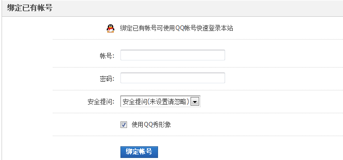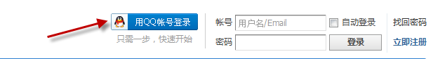 开启了QQ互联的站点在首页右上方的登录框左侧会显示“用QQ帐号登录”的图标,如下图所示: