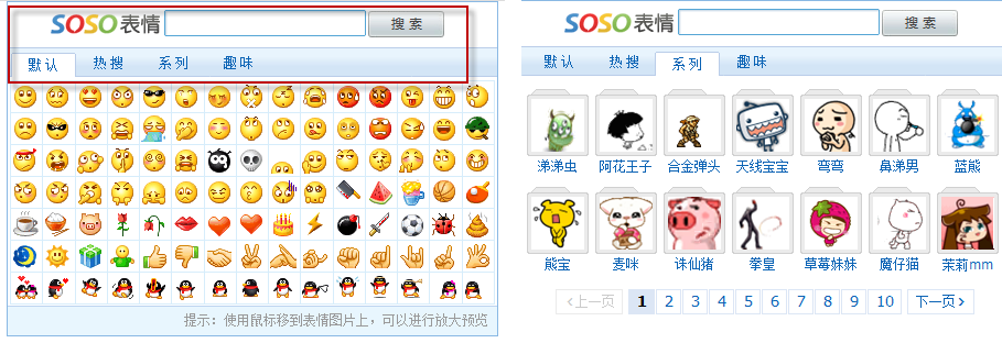 传统论坛的表情系统由于数量有限,不能满足会员的个性化需要。发帖中使用幽默诙谐的表情,已经成为网民的基础需求之一。Discuz! 云平台集成了SOSO表情,可实现与QQ即时通讯一致的体验,帮助用户自由选择最新、最炫的表情,大大提高看帖乐趣。图为发帖时的搜搜表情: