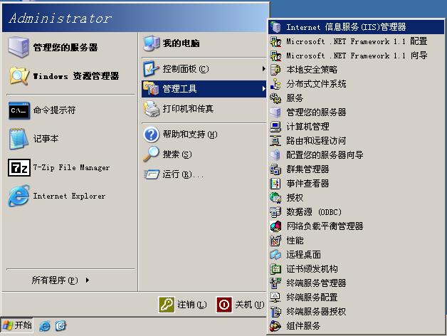 检查是否存在“Internet 信息服务 (IIS) 管理器”,由于操作系统盘中会自带 IIS 组件,所以建议安装操作系统时也把 IIS 组件安装上。如果未安装,可以到网络上下载对应操作系统版本的 IIS。