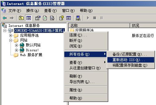 右键单击 “Web 服务扩展”,添加 PHP 扩展支持。