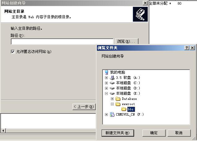 在网站分区中建立 wwwroot 以及下级站点文件夹 bbs