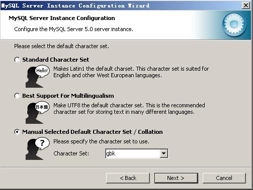 设定 MySQL 默认字符集:以用户站点语言为准,默认我们填 gbk。