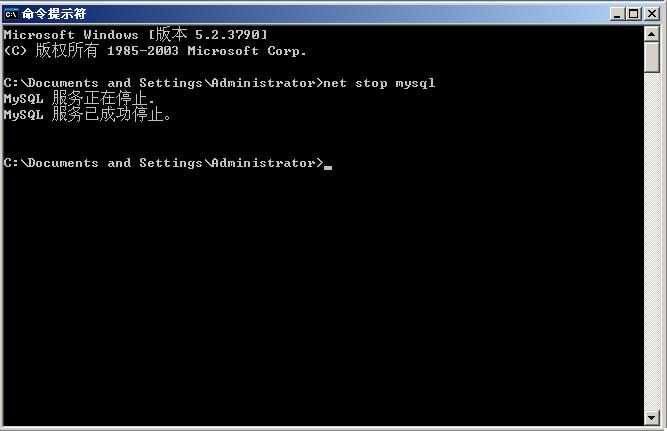 打开 cmd 命令提示符窗口,输入命令:net stop mysql 停止 MySQL 服务运行;