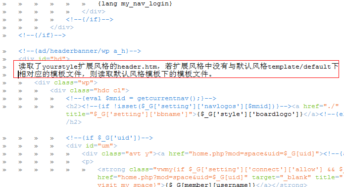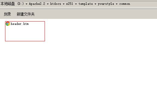 4. 在 header.htm 中适当位置添加一句话, 以此来测试读取当前模板的模板文件。